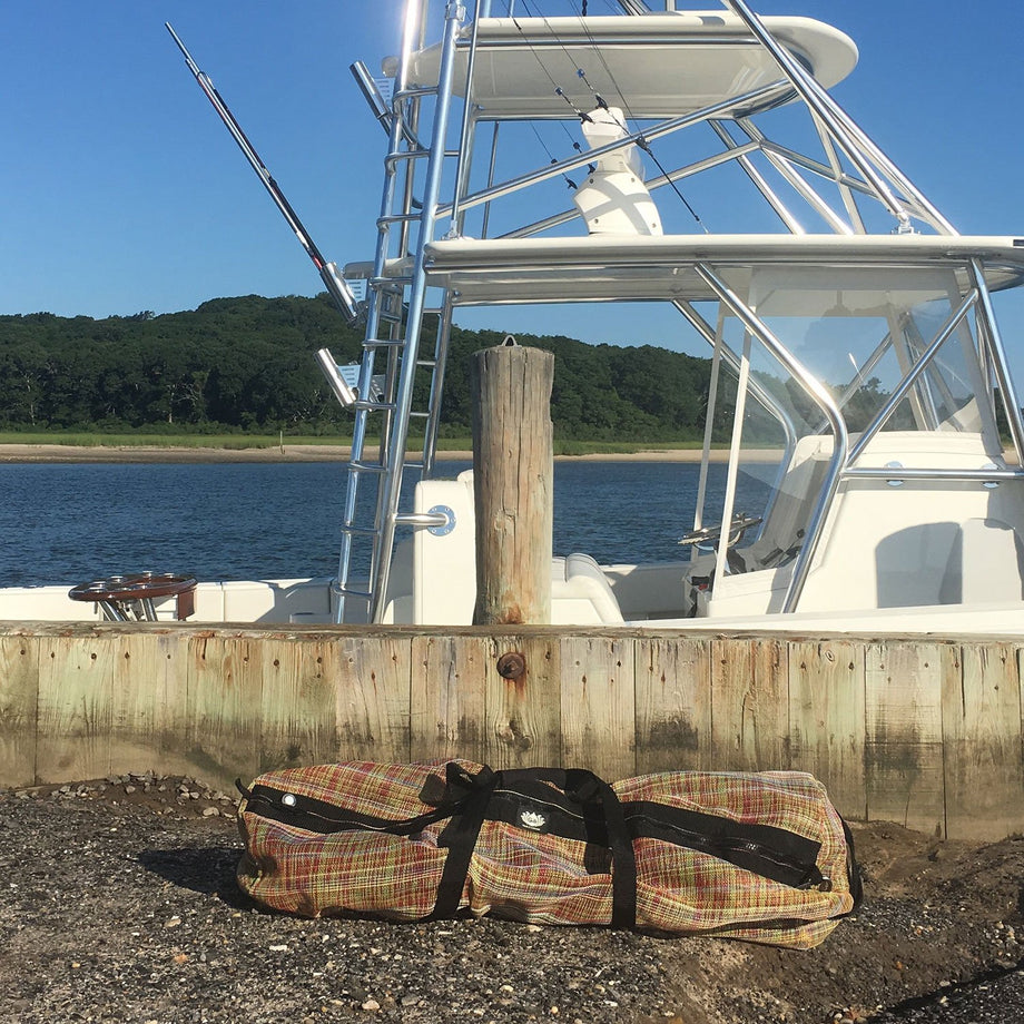This upcycled extra-large duffel is the perfect bag for freedivers. Big enough to carry long blade fins, the Gili Freediving Bag is also made of waterproof, vinyl mesh that dries quickly – and breathes, allowing wet gear to dry even while packed. Hand-made from recycled repurposed vinyl.