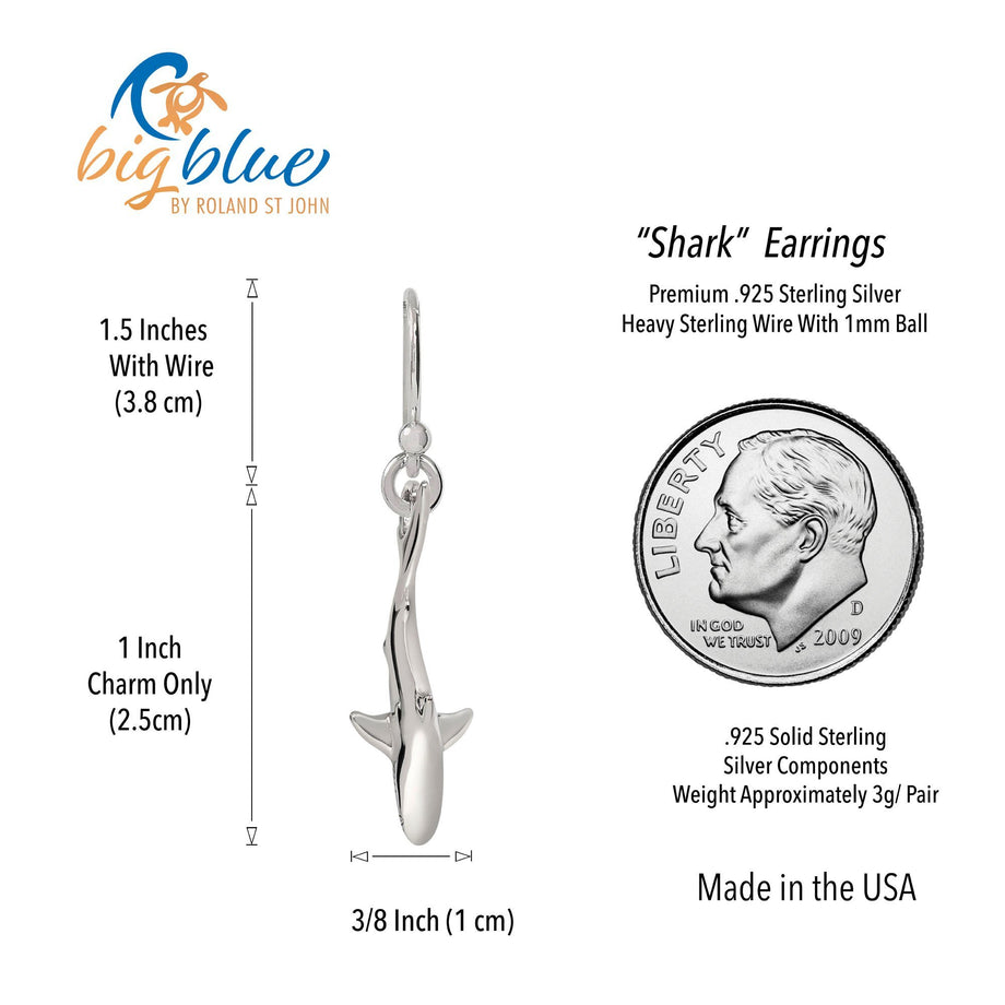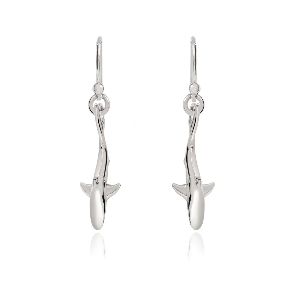 Show your love of sharks and the oceans with these sterling silver shark drop earrings. Handmade, these elegant earrings are a favorite of divers, shark lovers and ocean lovers.