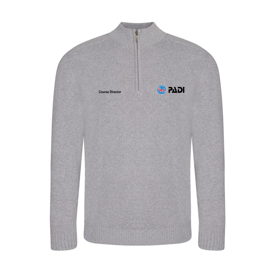 This is an exclusive instructor 1/4 zip knitted sweater with the Padi Logo embroidered on the one side of the chest and Course Director on the other side.