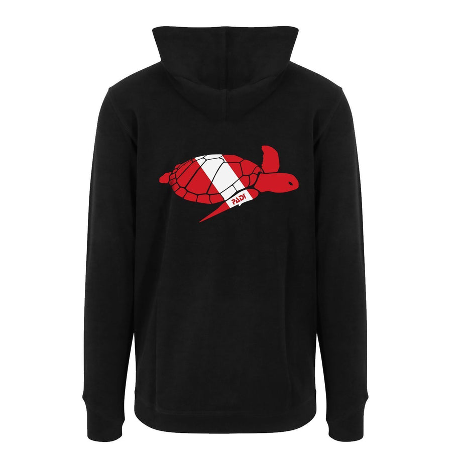 Are you part of Team Turtle? So are we! Grab this cozy, eco-friendly hoodie with a PADI dive flag sea turtle design on the back and declare your loyalty. Made from 80% Organic cotton, 20% Polyester certified OCS blended by Ecocert Greenlife, you’ll also be a champion for our endangered sea life.