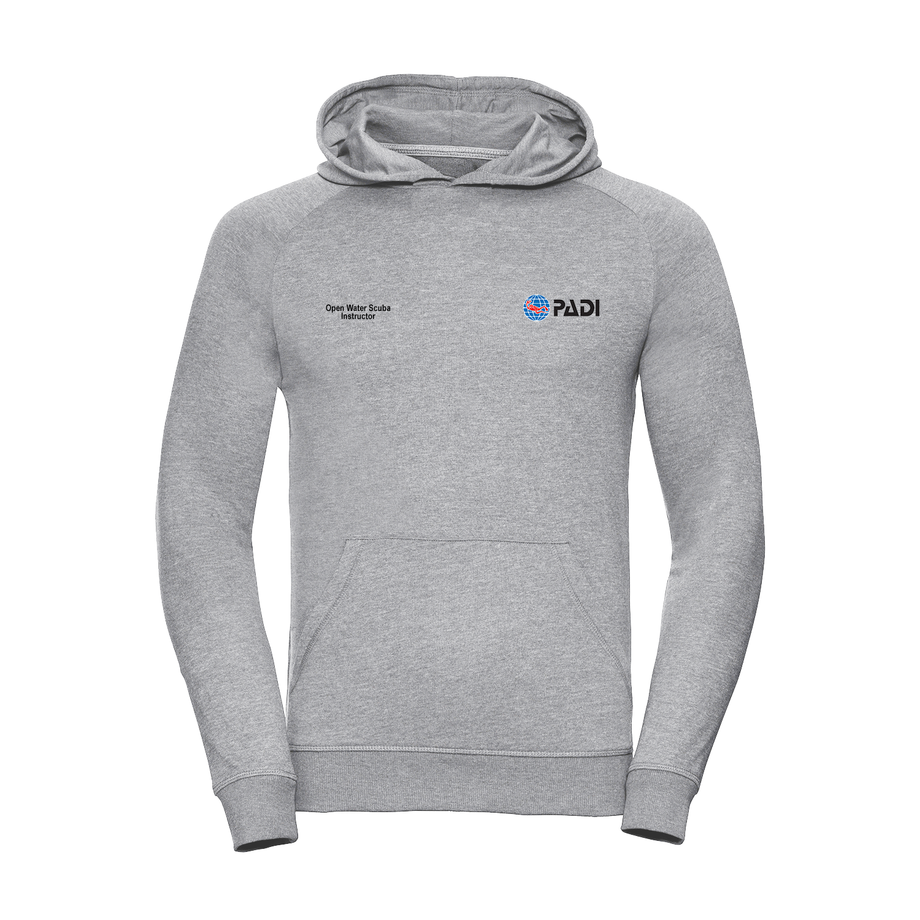 This is an exclusive instructor hoodie with the Padi Logo printed on front left chest and Open Water Scuba Instructor on the front right chest.