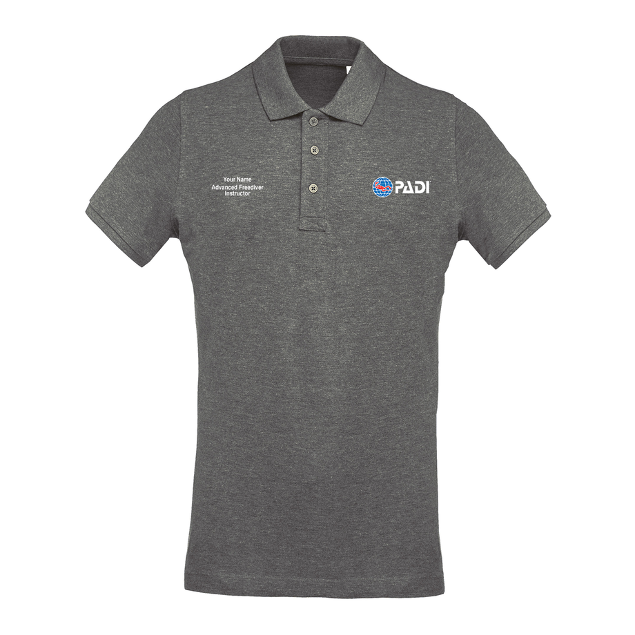 This is an exclusive instructor polo with the Padi Logo embroidered on one side of the chest and Advanced Freediver Instructor on the other side.