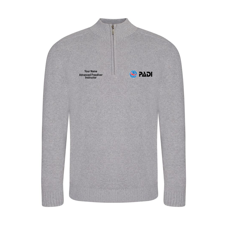 This is an exclusive instructor 1/4 zip knitted sweater with the Padi Logo on the one side of the chest and Advanced Freediver Instructor on the other side.