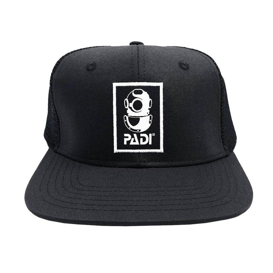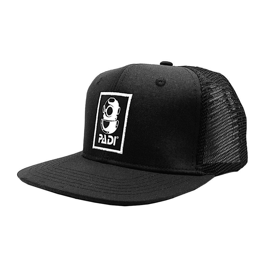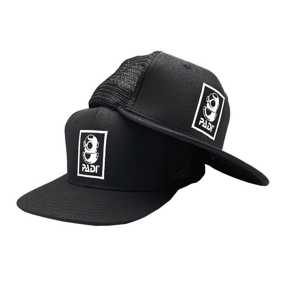We’ve taken an iconic part of diving heritage and put it on a fashion-forward, eco-friendly trucker to blend style and sustainability.  The equivalent of 8 plastic bottles were used in the production combined with organic cotton to make this one of the eco-friendliest caps on the market.  With a pronounced, flat bill and a high profile, this iconic dive helmet hat has become a fast favorite at PADI offices worldwide.