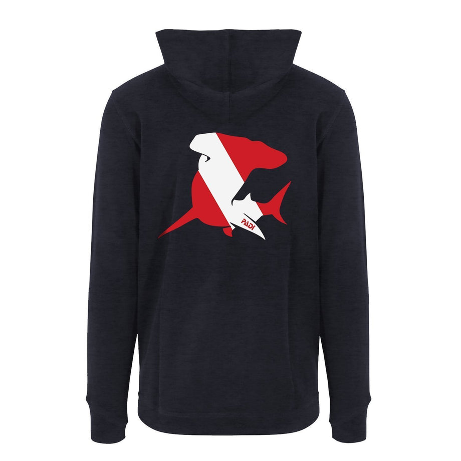 Stay warm in the colder temperatures with this eco-friendly hoodie with a PADI dive flag hammerhead shark design on the back. Made from 80% Organic cotton, 20% Polyester certified OCS blended by Ecocert Greenlife, you’ll also be a champion of the endangered sea creatures we love.